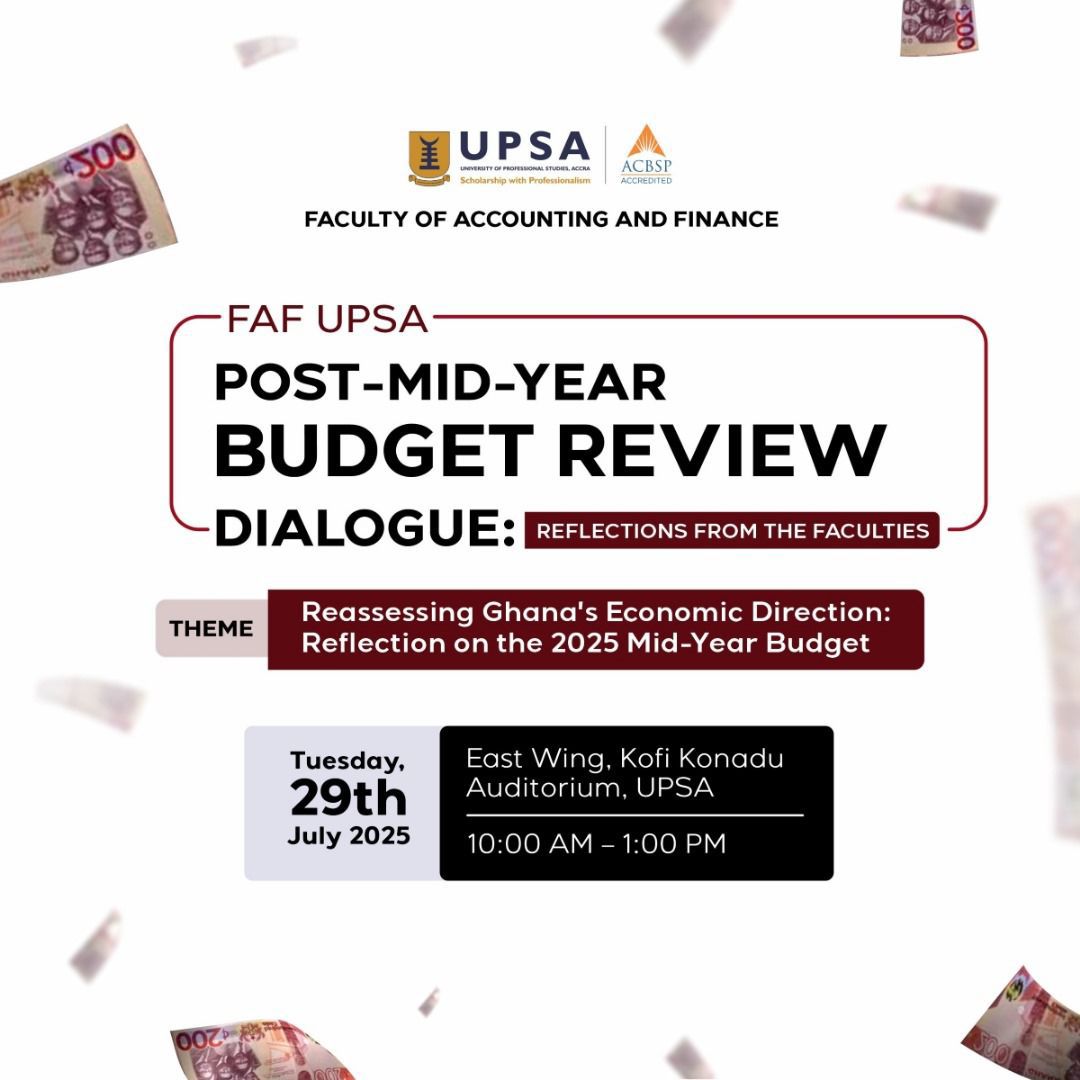 The Faculty of Accounting and Finance (FAF) of the University of Professional Studies, Accra (UPSA) presents the 2025 Post Mid-year Budget Review Dialogue: Reflections from the Faculties.