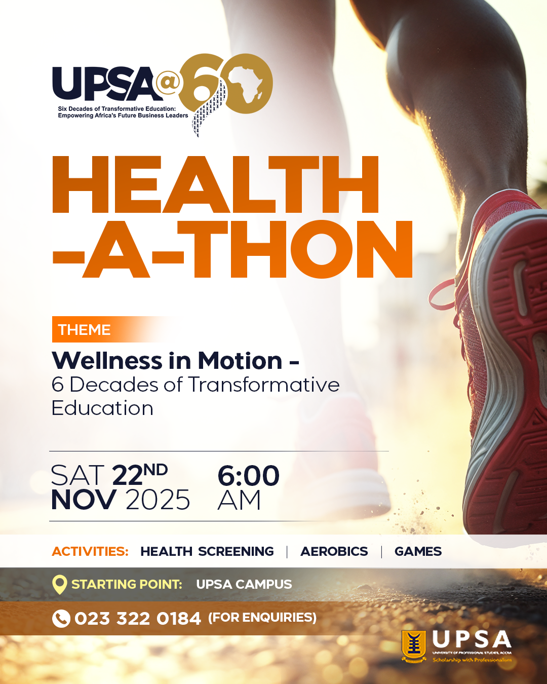 The UPSA@60 Anniversary Planning Committee warmly invites members of the University community and esteemed alumni to participate in the upcoming health walk dubbed “Health-A-Thon.”