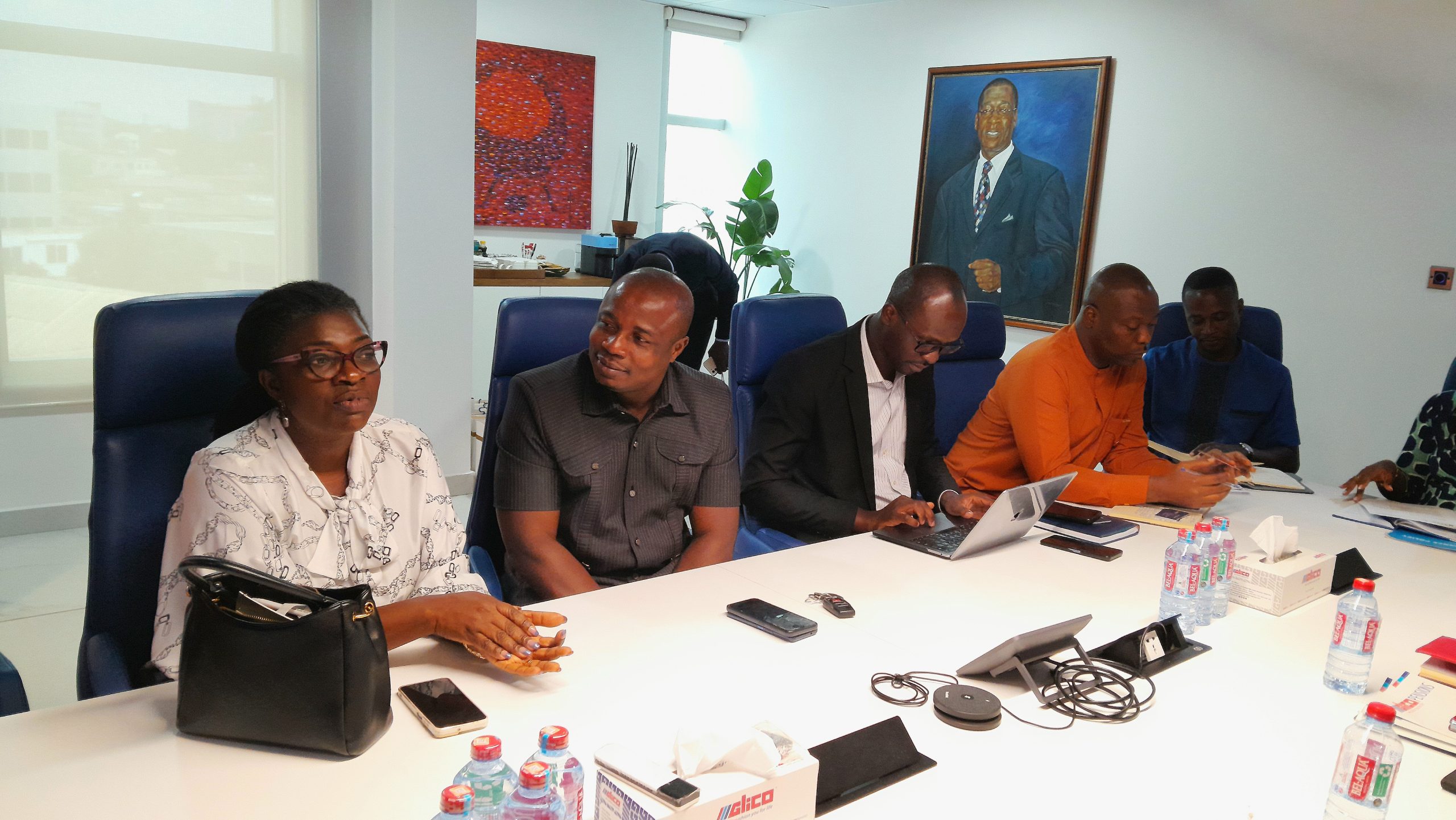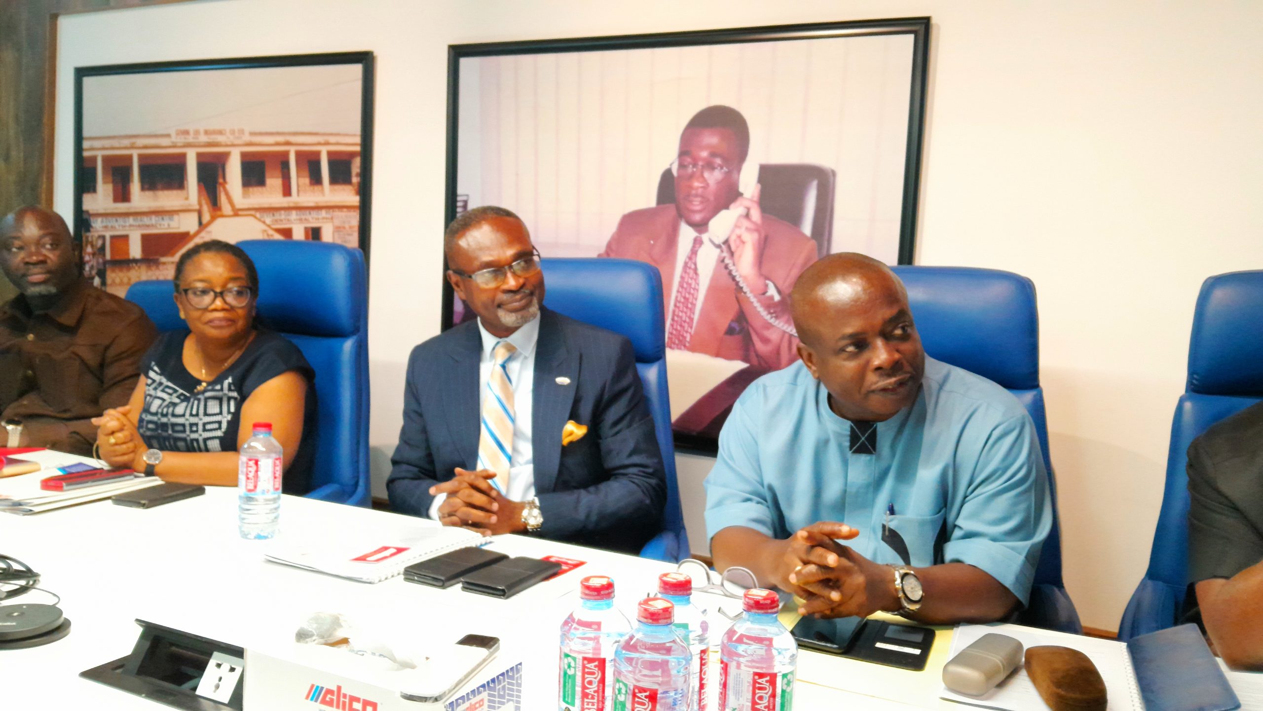 CEO of the GLICO Group, Mr. Edward Forkuo Kyei [middle] with some top management members of the company.