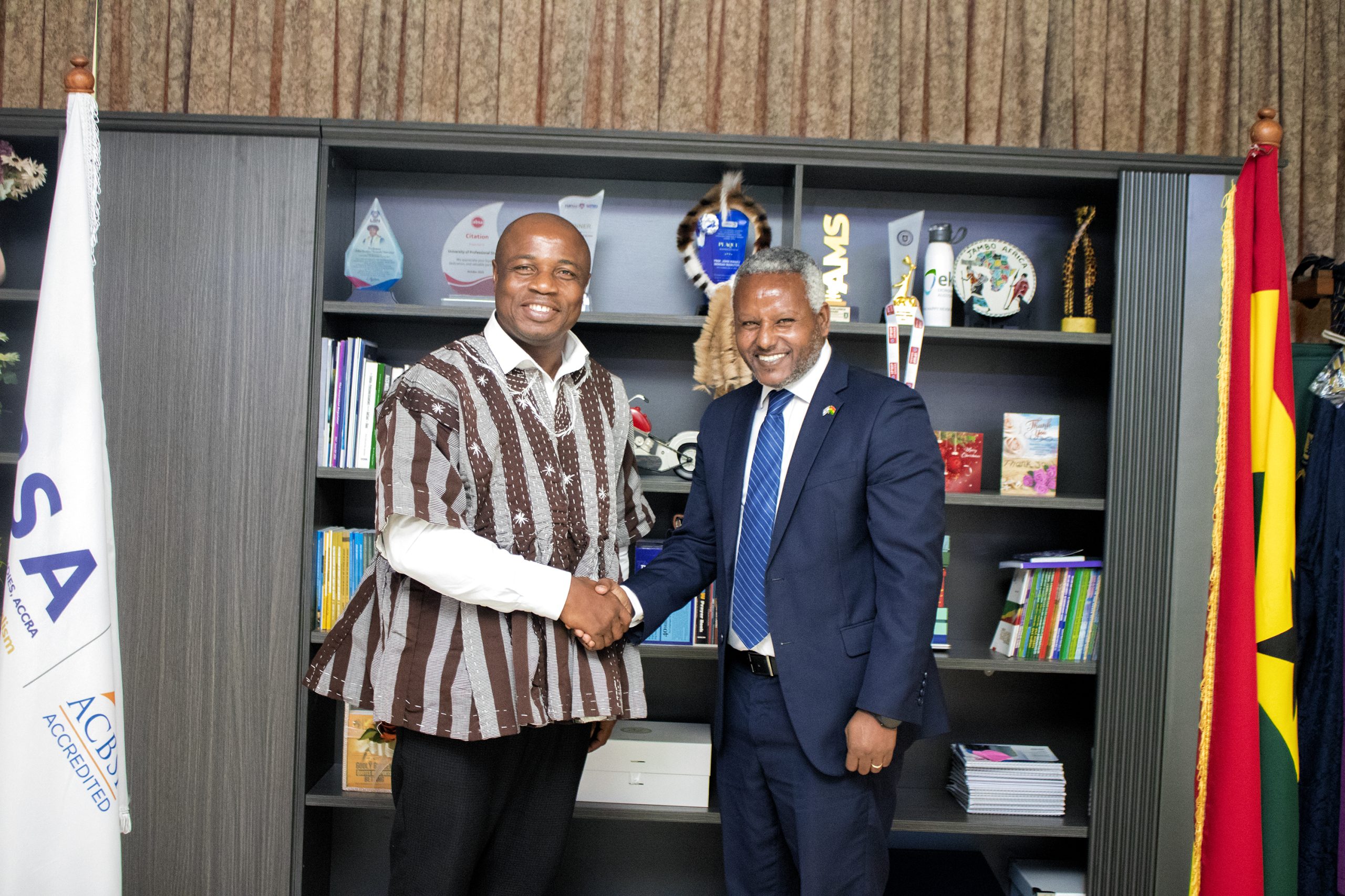 The Deputy Chief of Mission (DCM) of the Embassy of Israel to Ghana, Liberia and Sierra Leone, Mr. Aviel Avraham, accompanied by the MASHAV Coordinator, Ms. Perpetua Mills Annorbah-Sarpei, has paid a courtesy visit on the Vice-Chancellor of the University of Professional Studies, Accra (UPSA), Prof. John Kwaku Mensah Mawutor, on Wednesday, 25 February 2026, to explore pathways for academic cooperation and institutional collaboration.